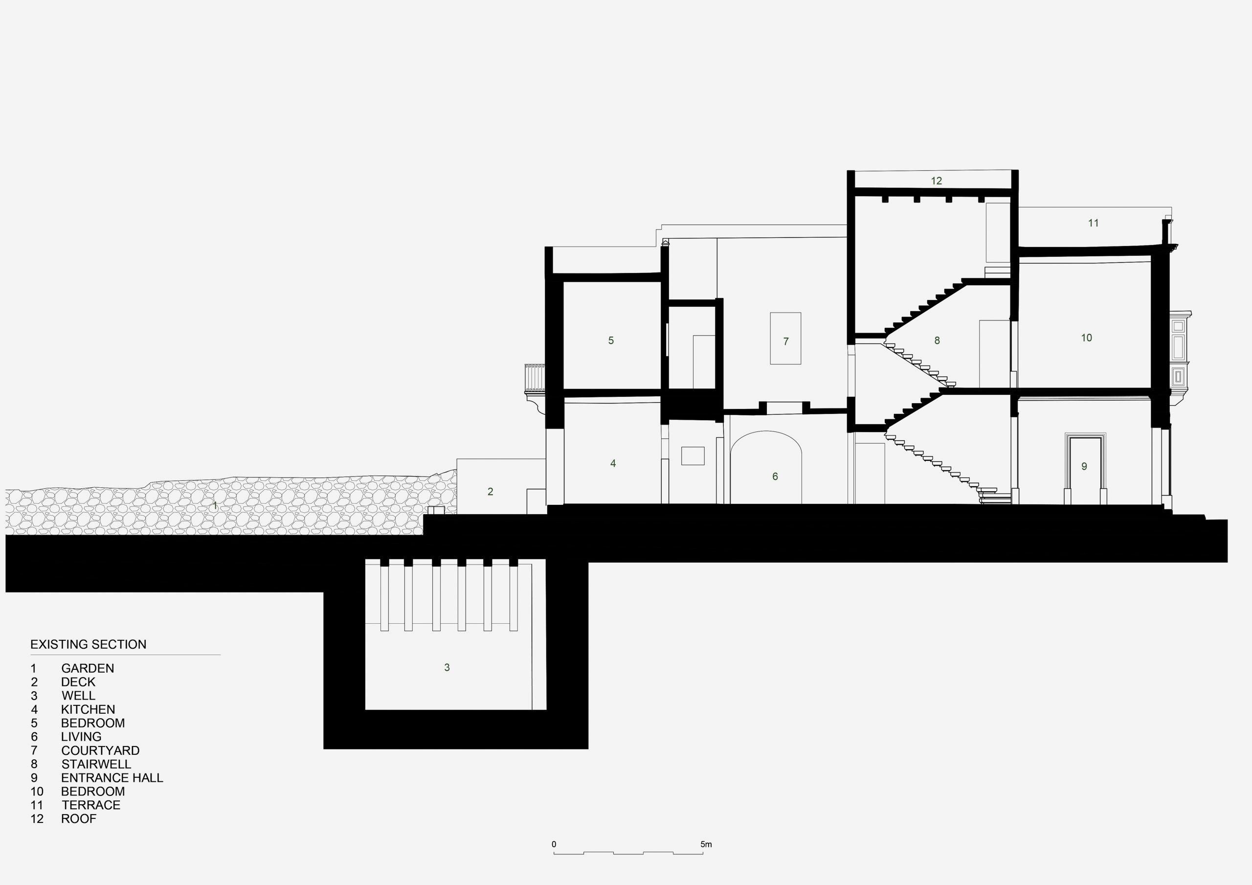 Set within Sliema’s dense urban grain, this townhouse project holds the old and the new in precise counterpoint. While the turn-of-the-century street-facing front was maintained, the rear spaces were cleanly severed and wholly rebuilt to hold new structures.