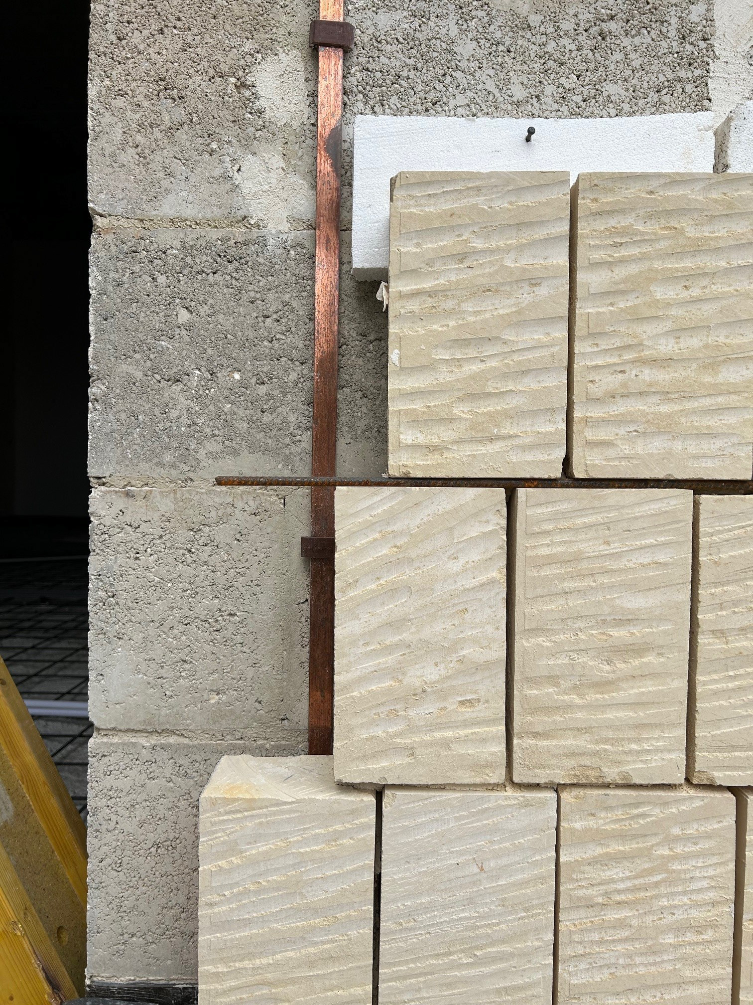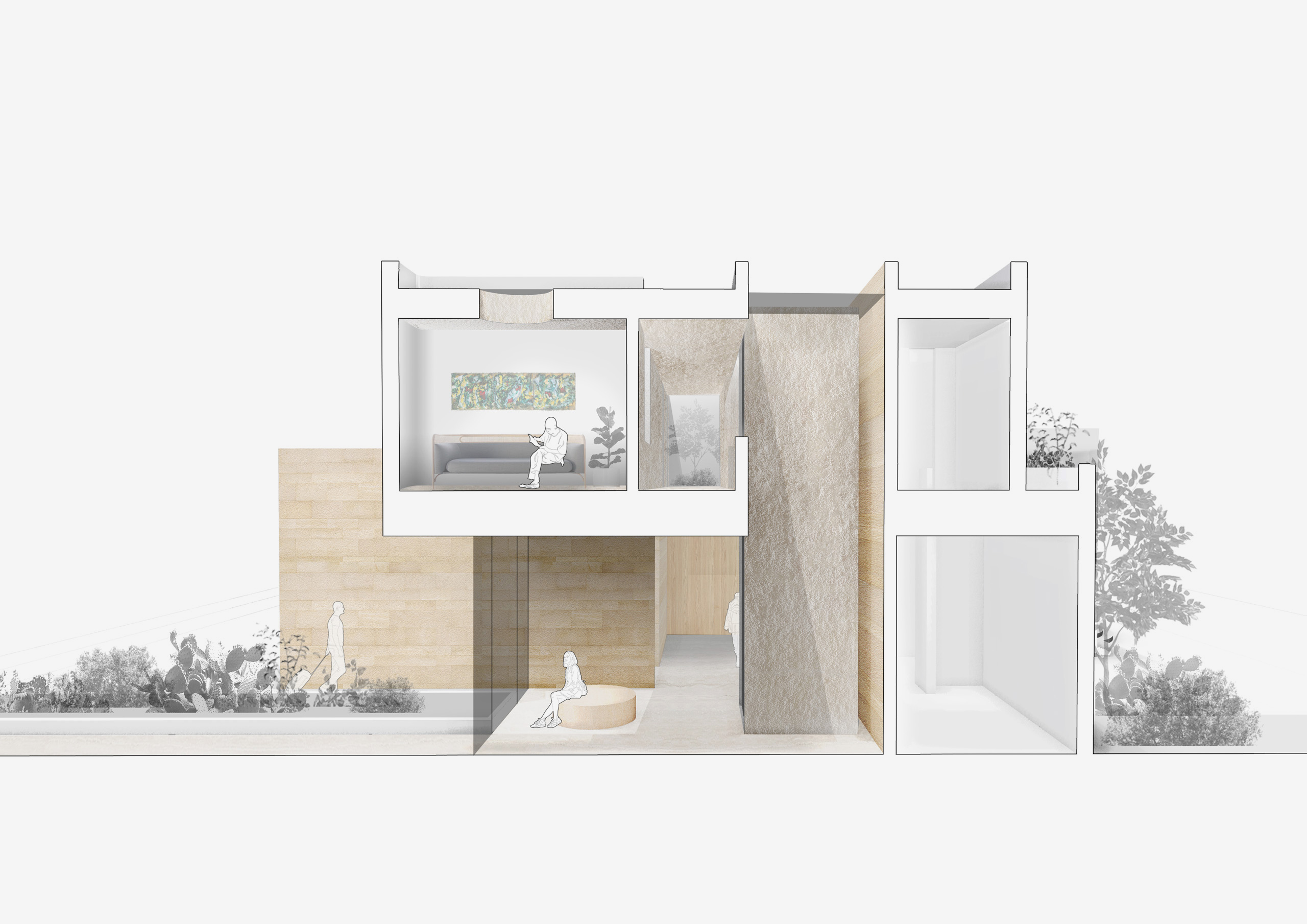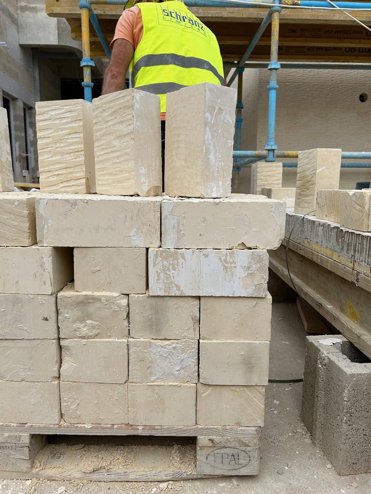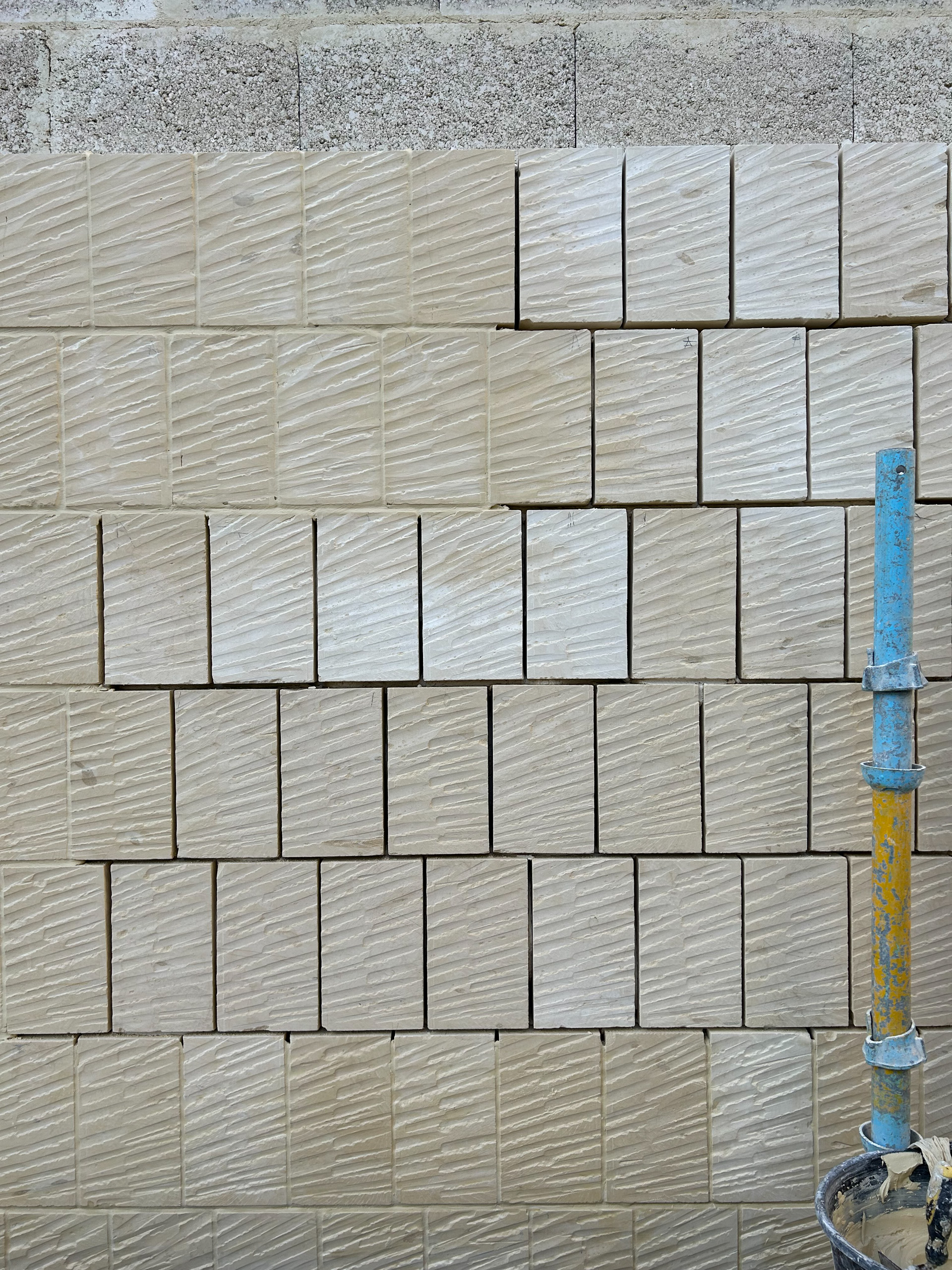 The former terminal’s stone structure was carefully deconstructed: its limestone blocks salvaged, sliced, and hand-textured using the traditional ‘mannarett’ chisel – a tool long used by Maltese stoneworkers. This gave the building a stone skin rich in texture and rhythm, while avoiding the environmental cost of new stone.